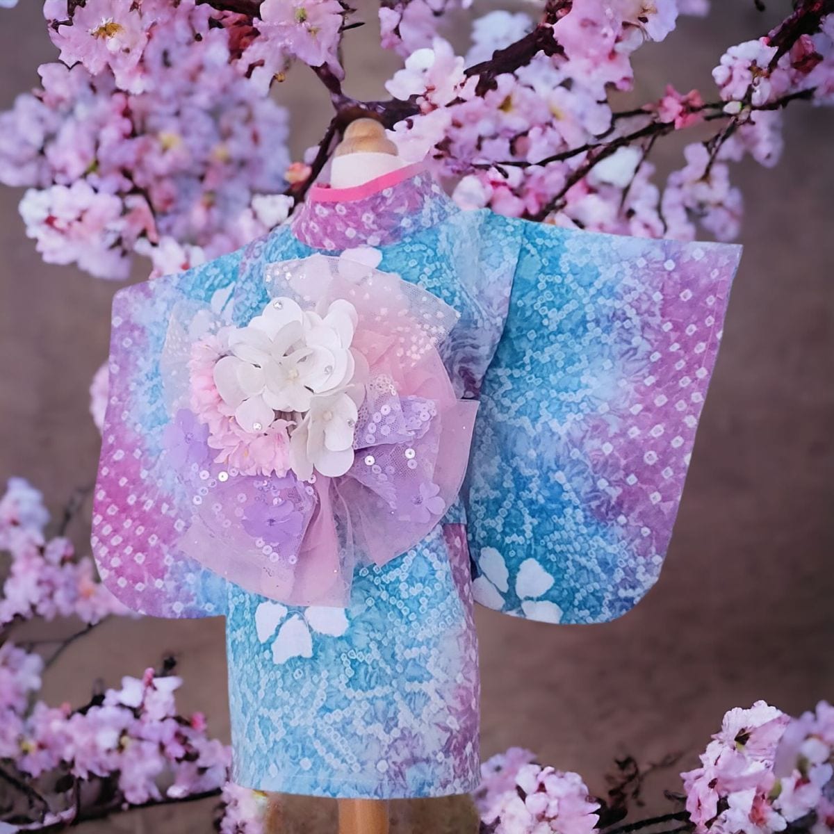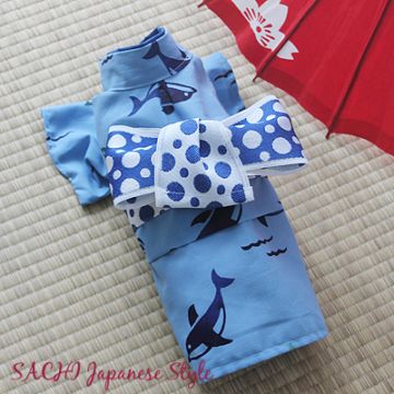 ペットの浴衣カシャロット(ドレス&浴衣2way)ブルー犬の浴衣猫の浴衣