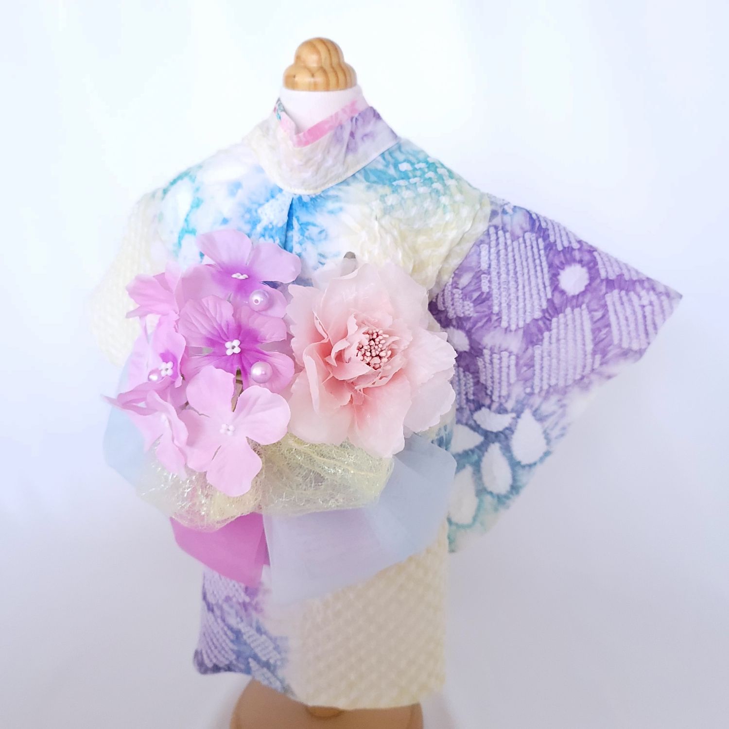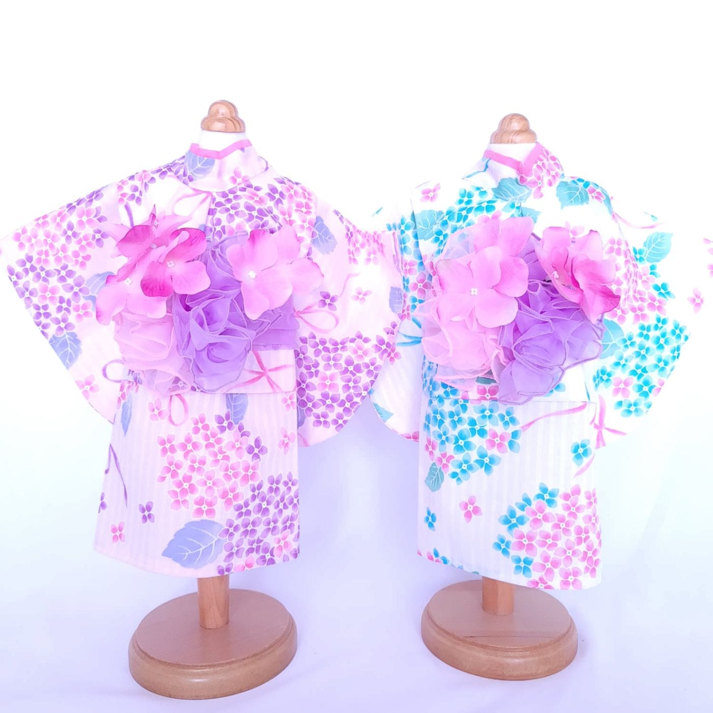 ペットの浴衣ーあじさい紫陽花づくし(ホワイト)犬の浴衣猫の浴衣