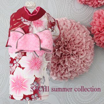ペットウェア浴衣椿つばき浴衣・着物ホワイトー犬の浴衣猫の浴衣