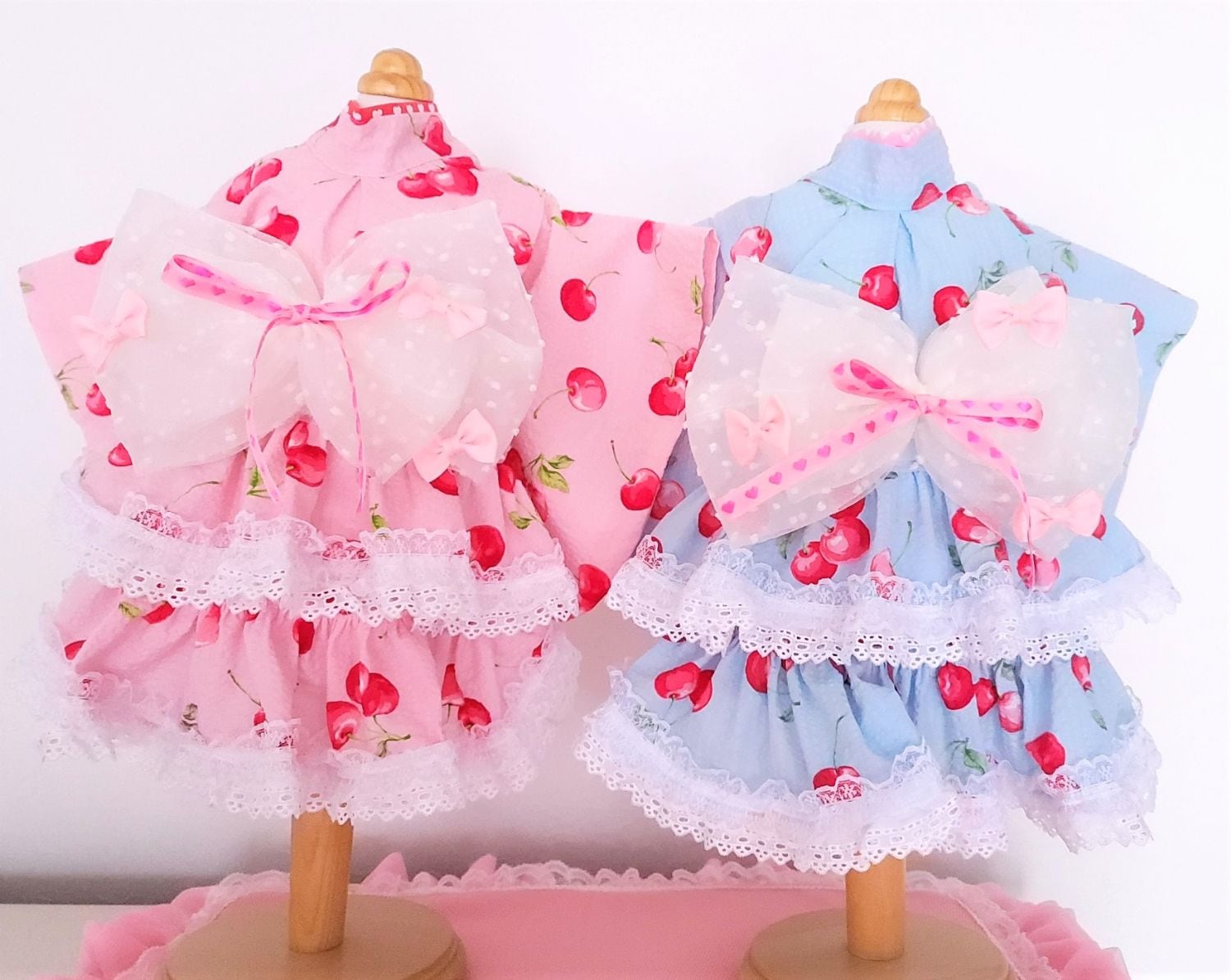 ペットウェア浴衣ドレス-さくらんぼチェリーブルー犬の浴衣猫の浴衣