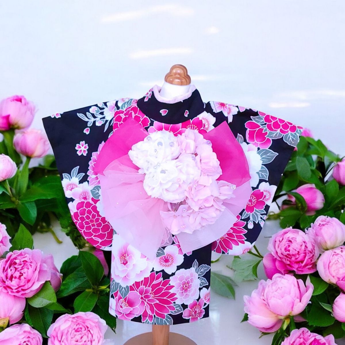 ペットの着物犬服の着物ー花咲く雅(みやび)ブラック ~桜花爛漫~