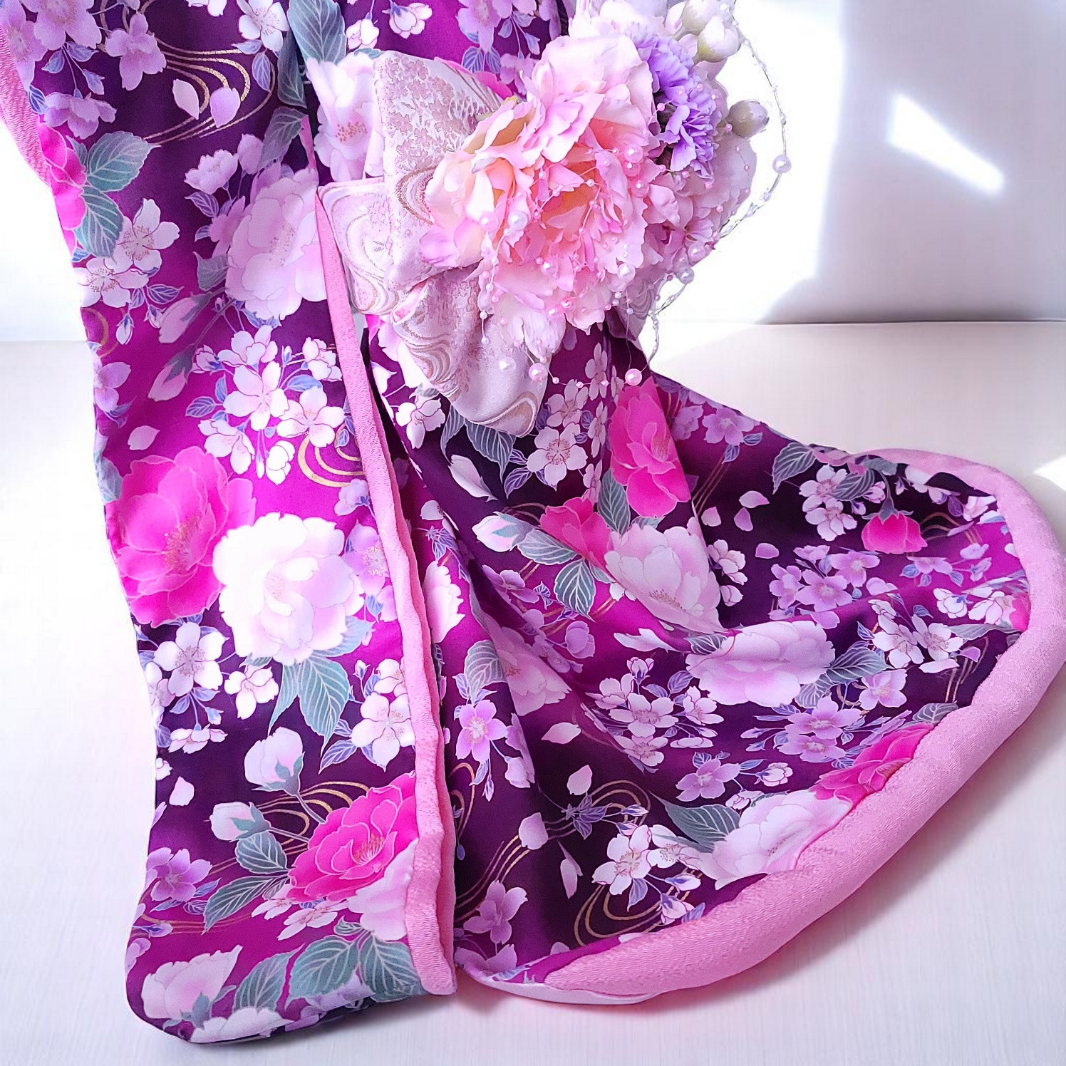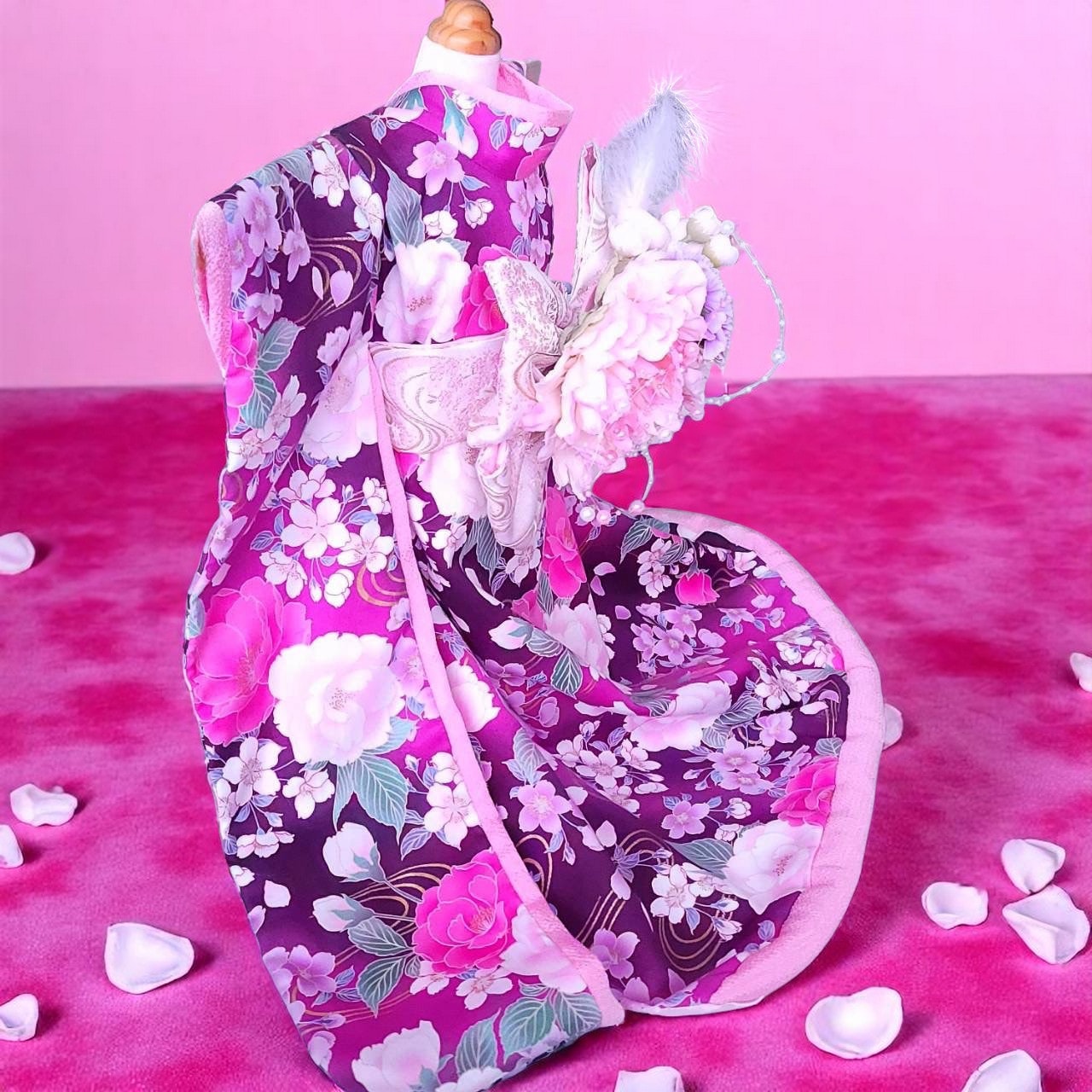 「恋の華」は、最愛の小さな家族に捧げる、大振袖のお引きずり着物です。
