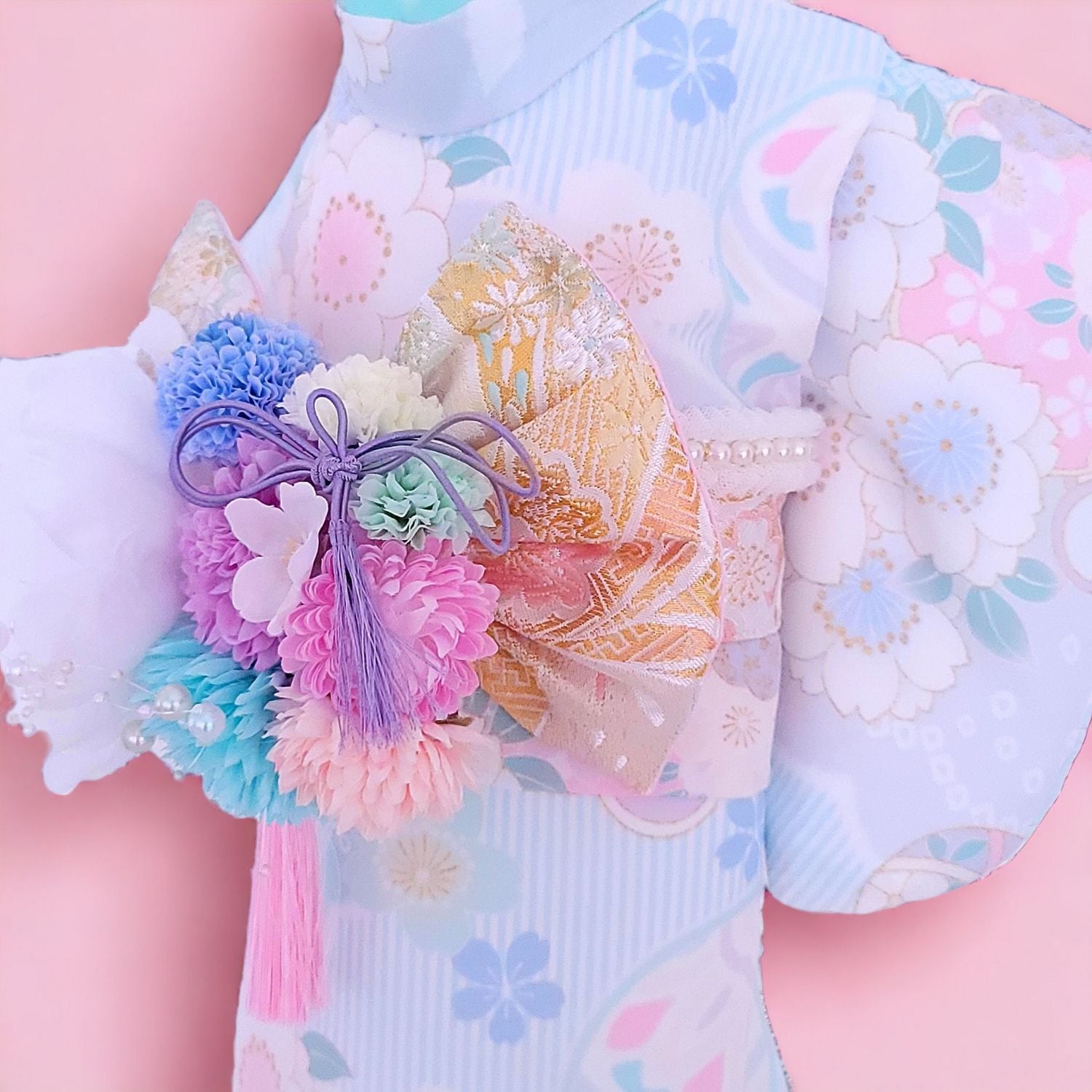 帯締めと帯飾りが取り外し可能な仕様になっており、お好みに合わせてコーディネートすることができます。