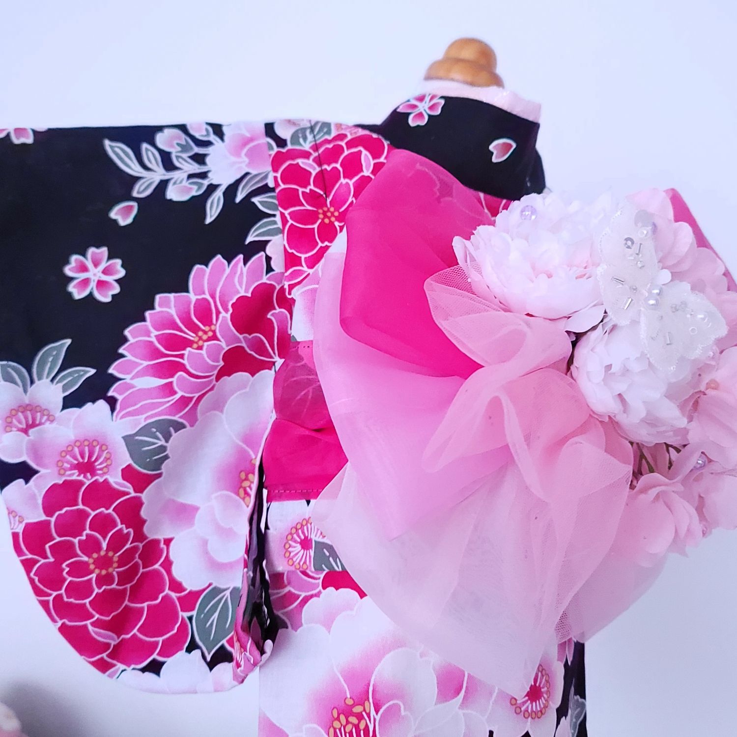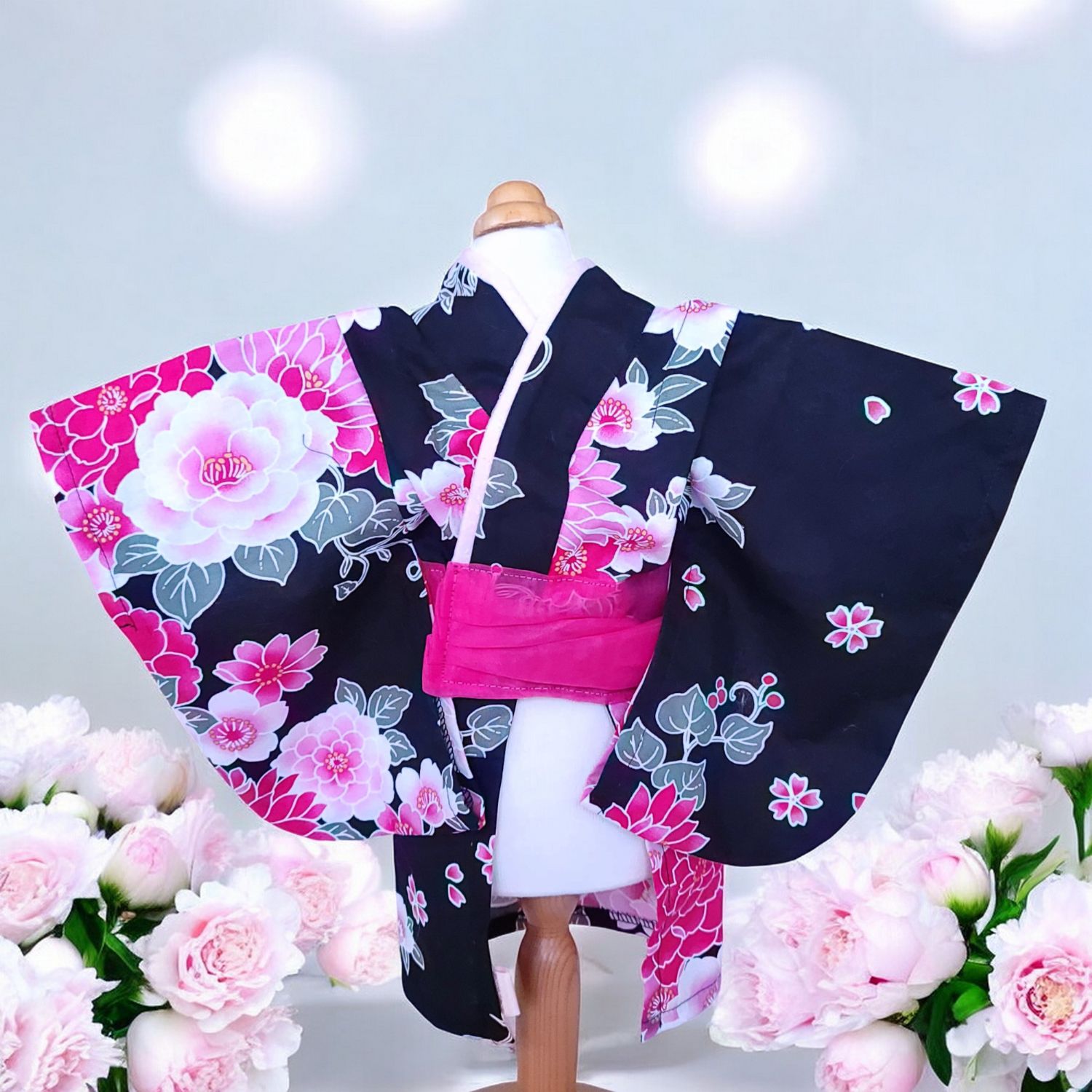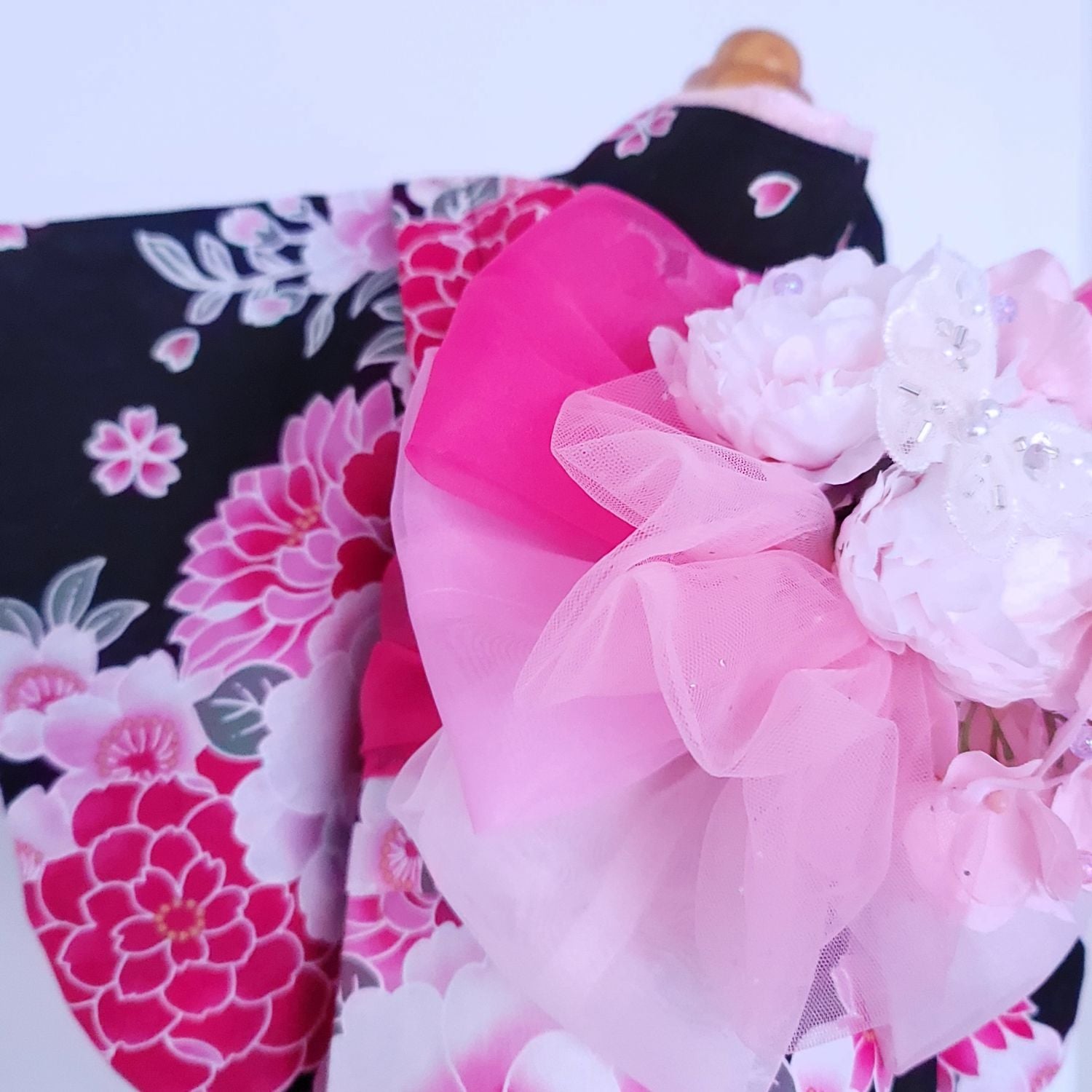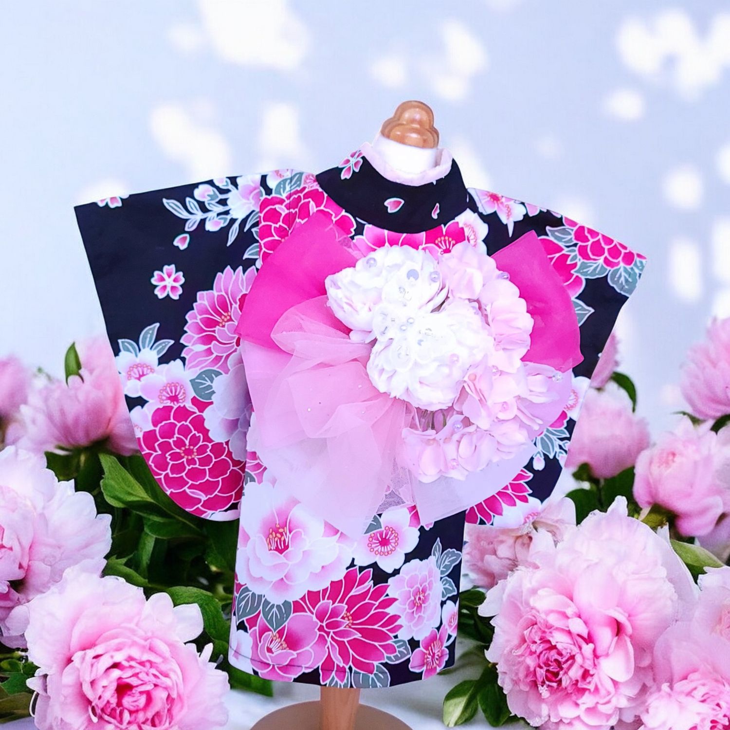 ペットの着物犬服の着物ー花咲く雅(みやび)ブラック ~桜花爛漫~