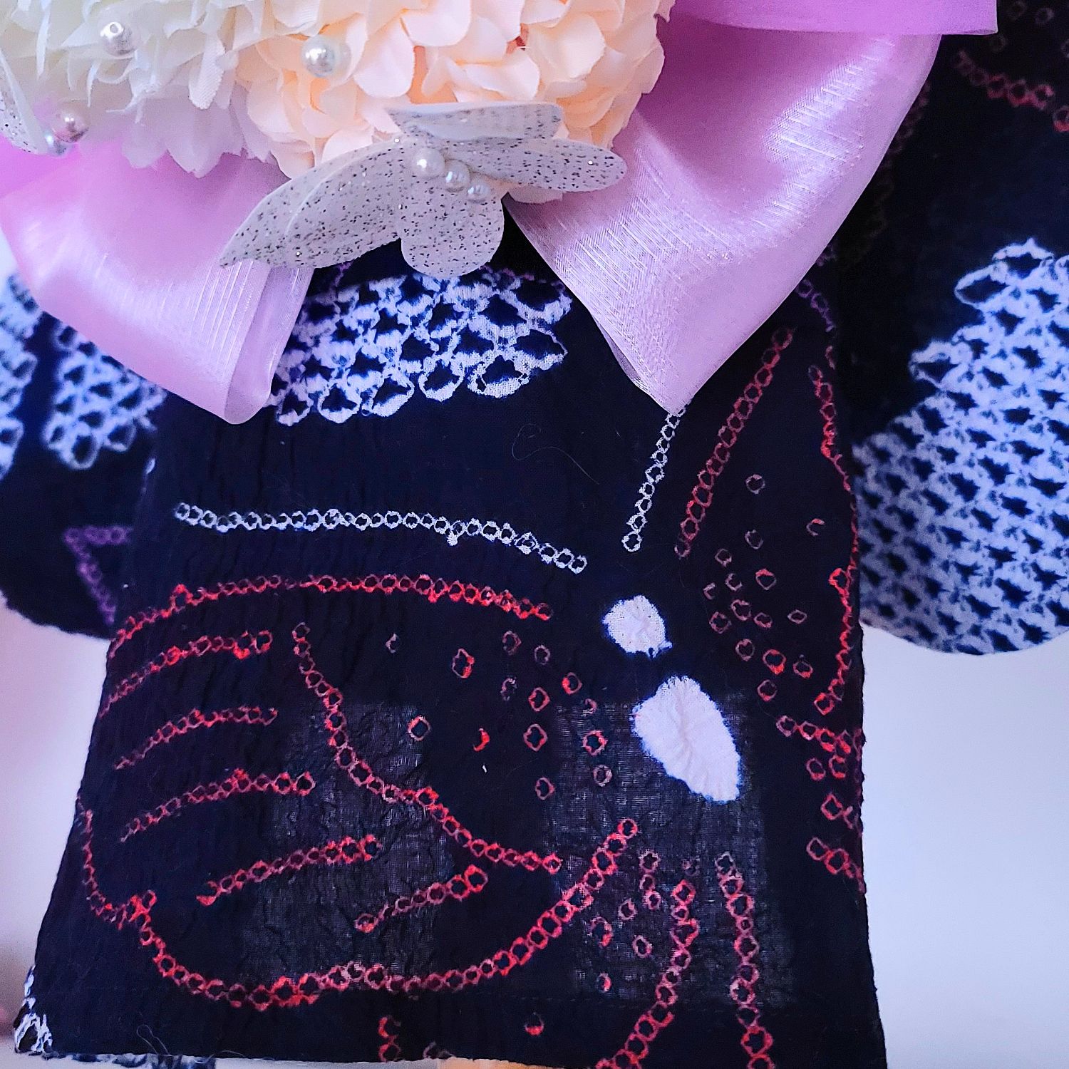 漆黒の生地には、繊細な和柄が織り込まれ、