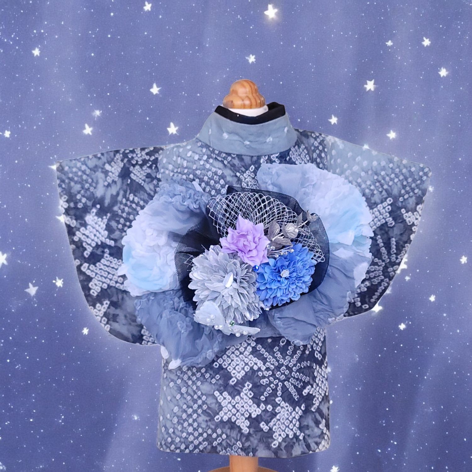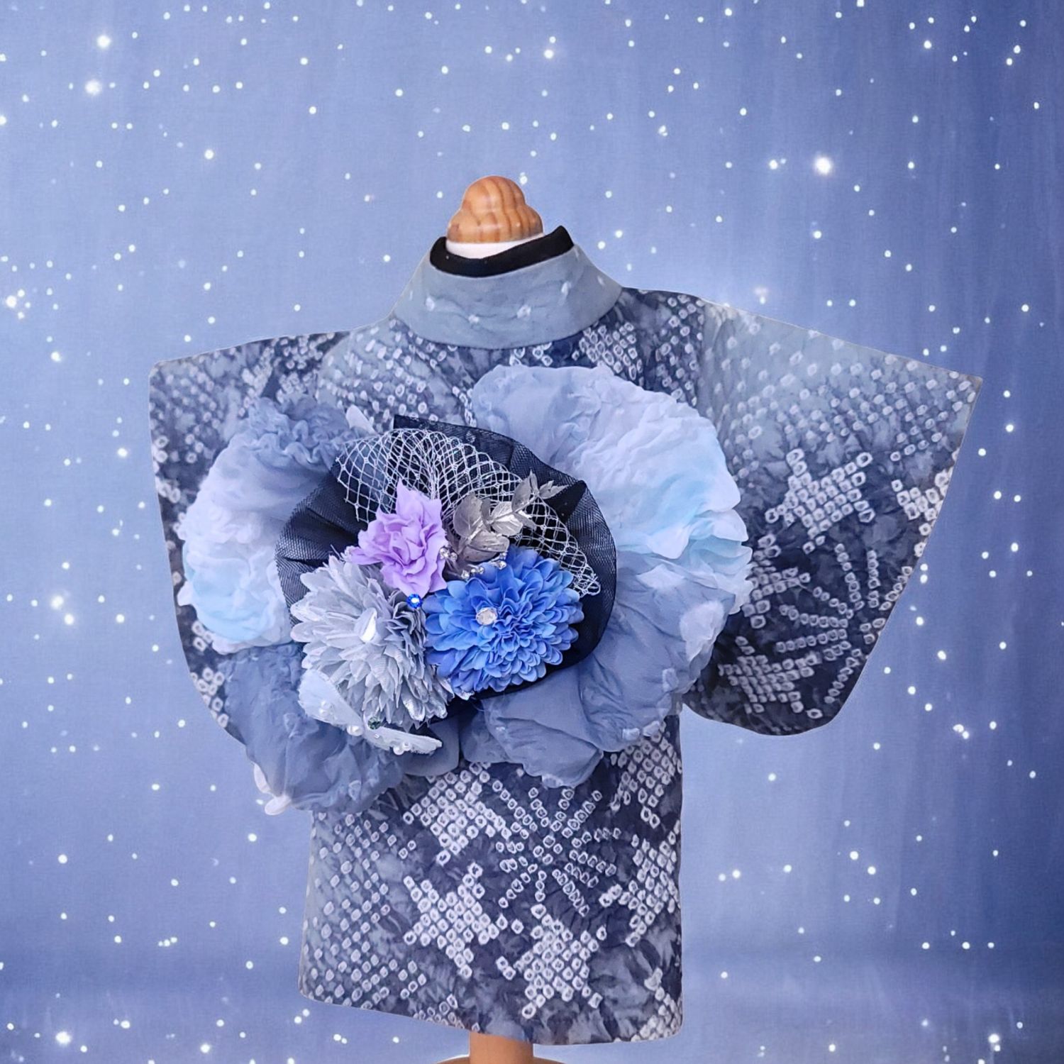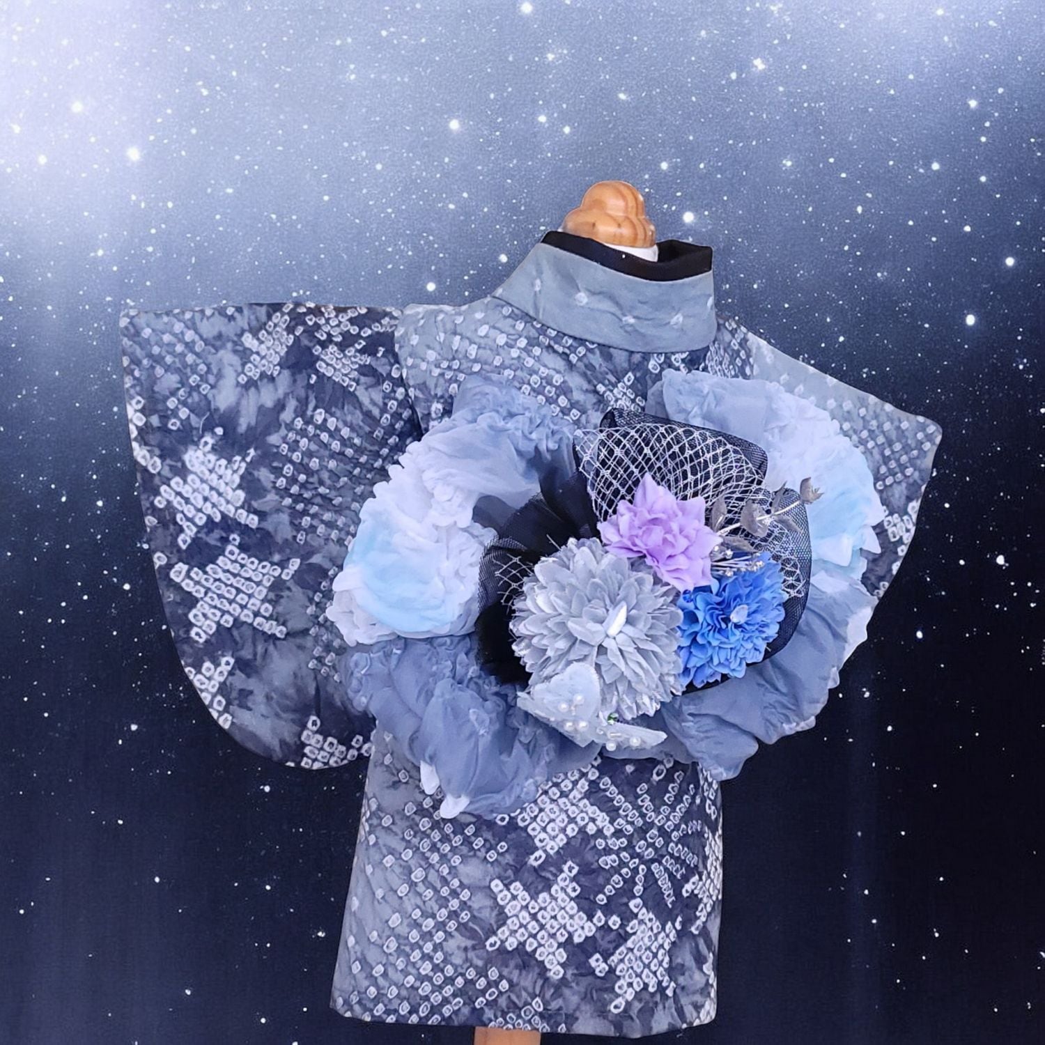 澄んだ夜空に咲く花のような帯飾りは、