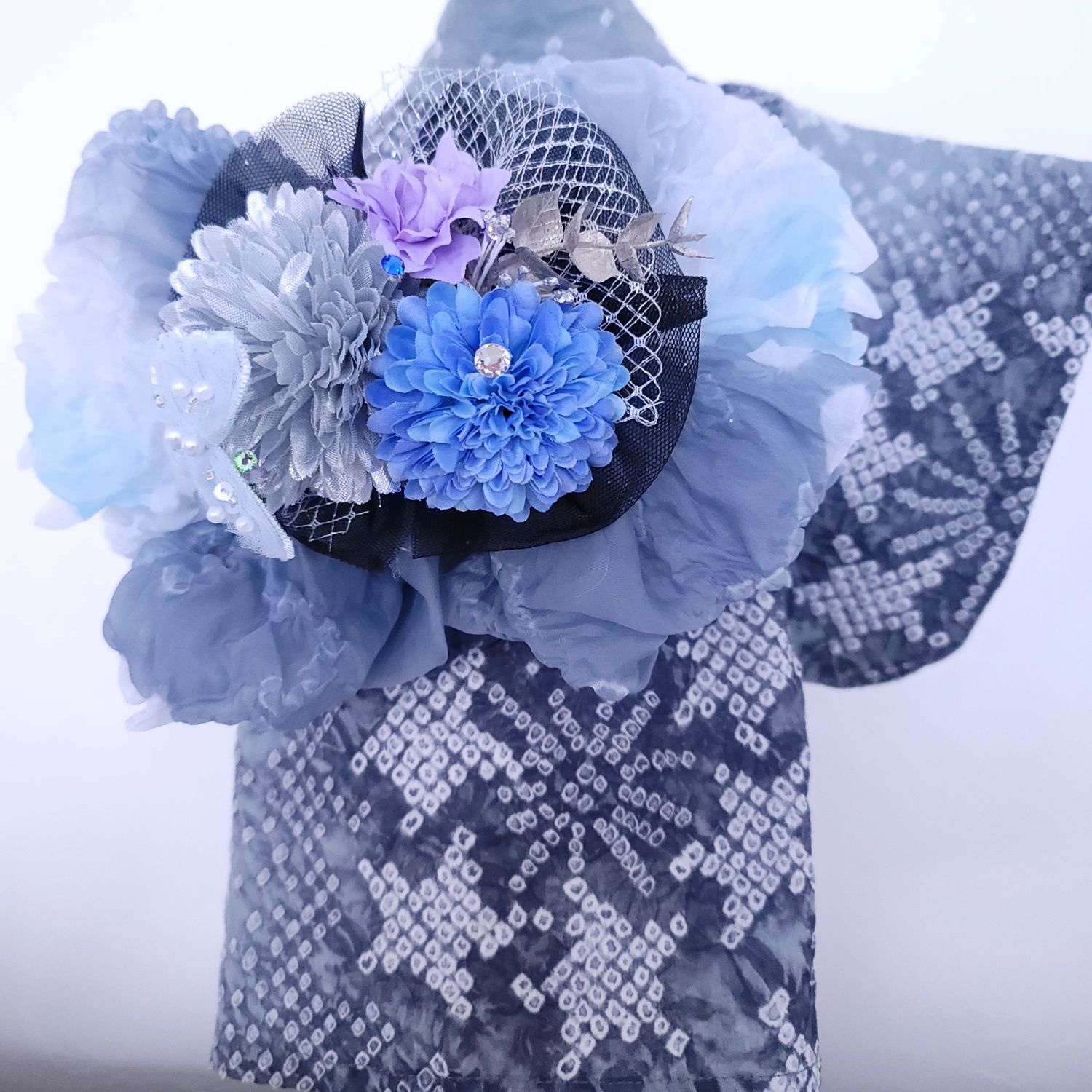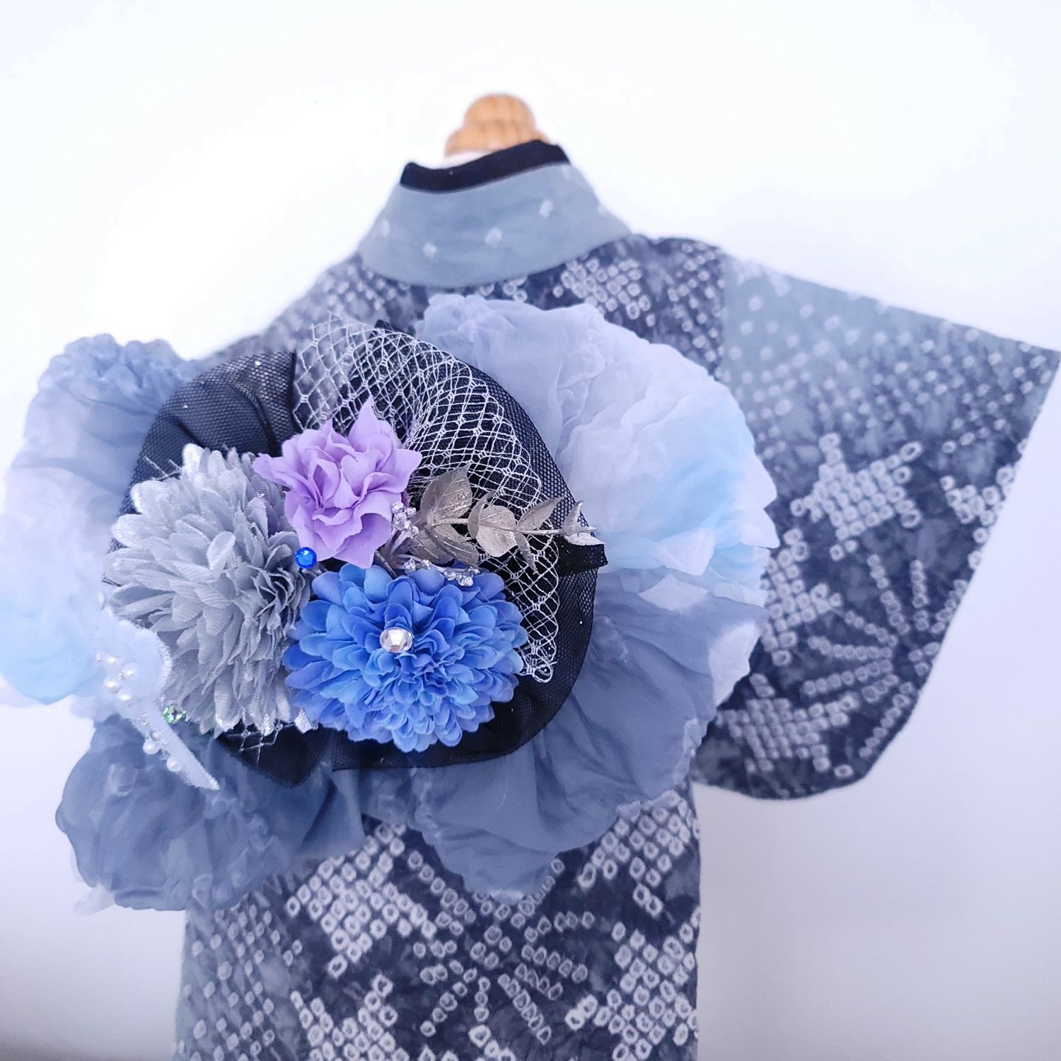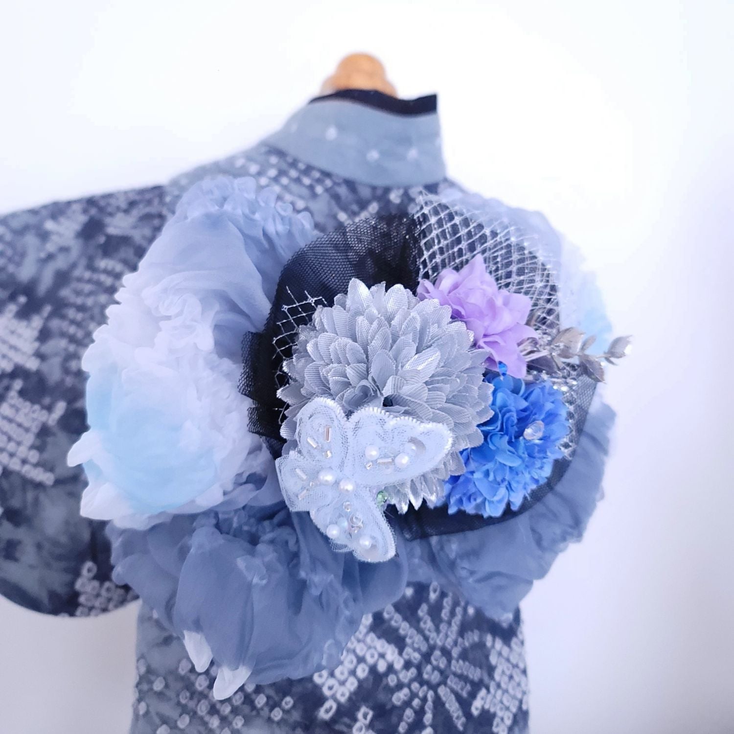 澄んだ夜空に咲く花のような帯飾りは、