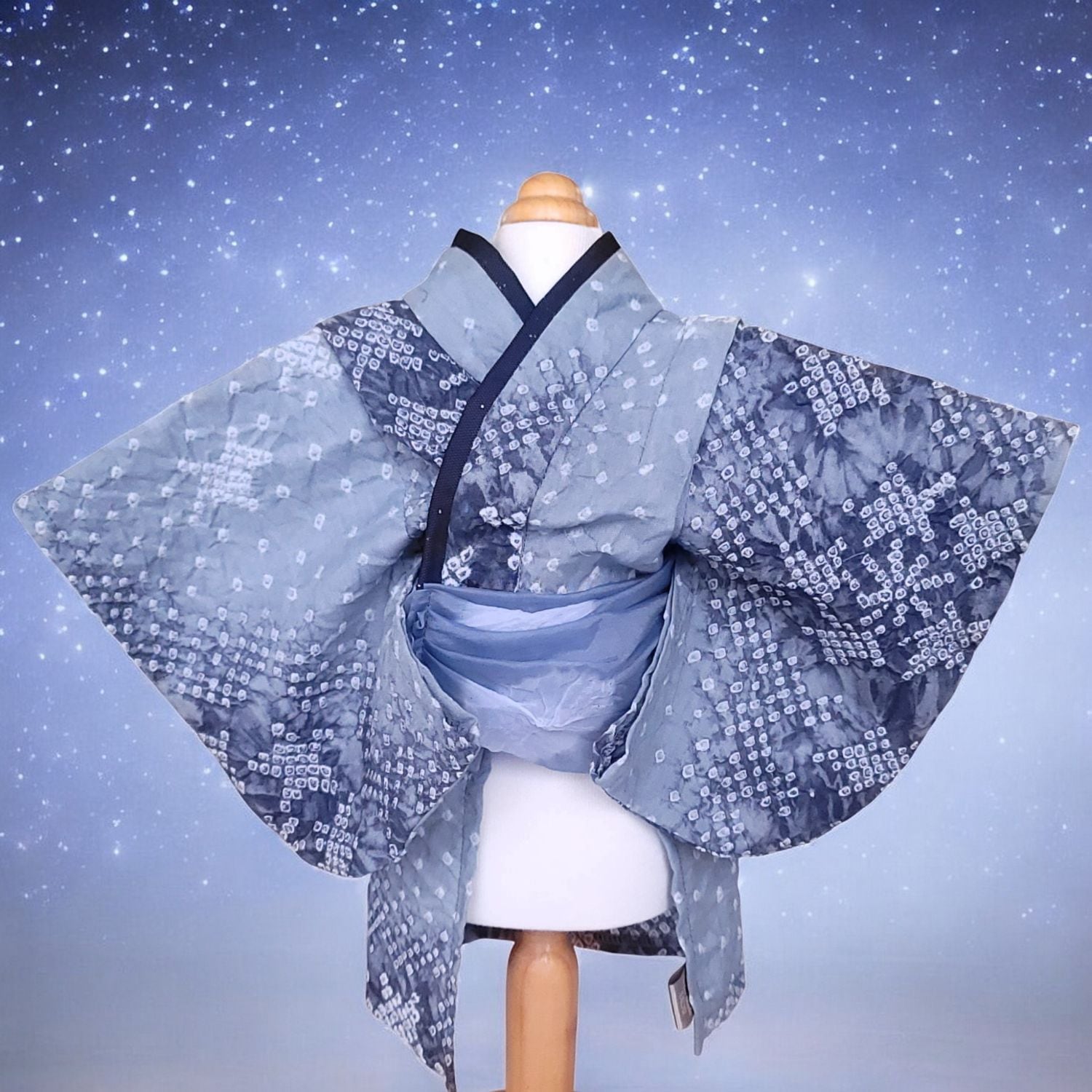 「星紗(せいしゃ)」は、有松絞りの伝統美に星屑をちりばめたような、