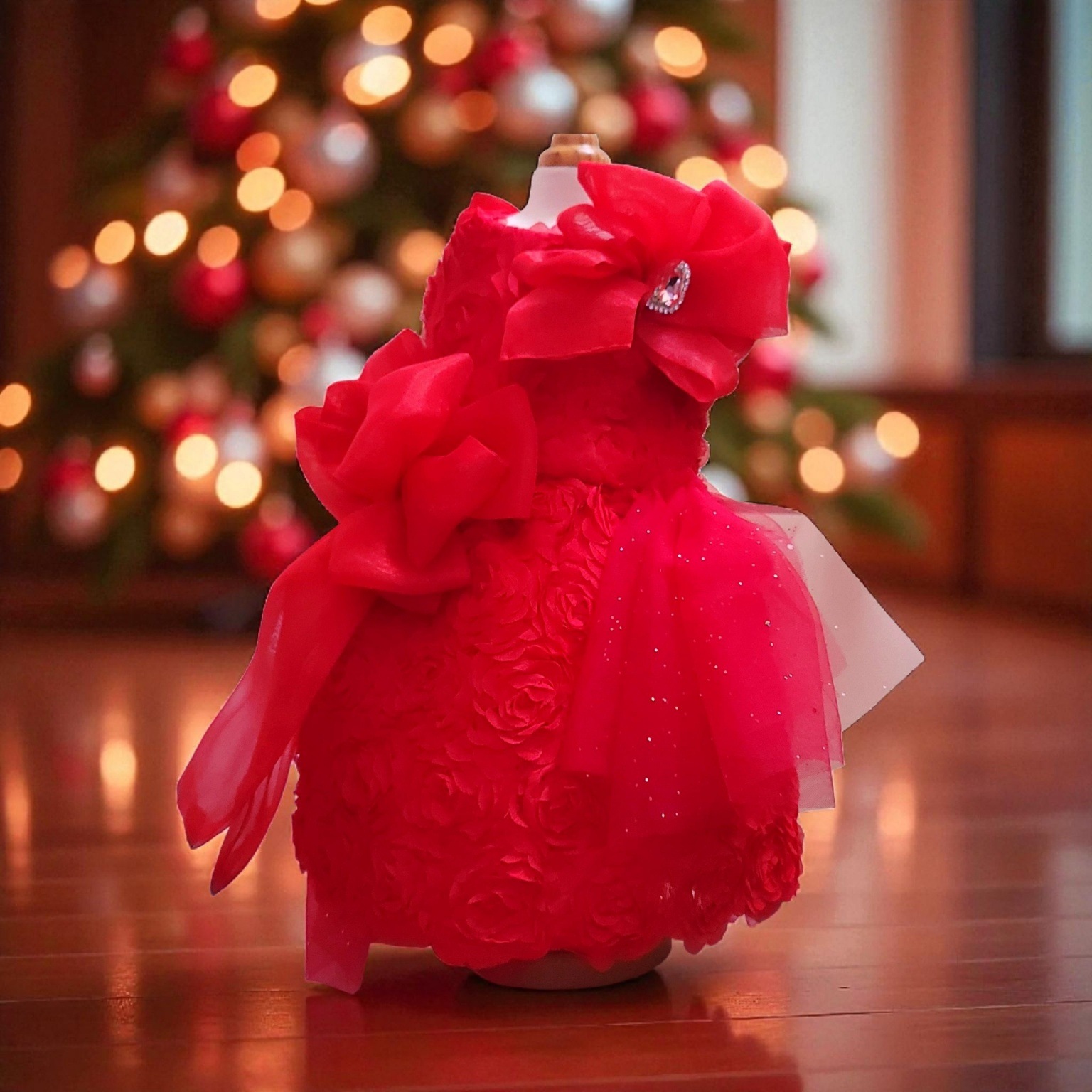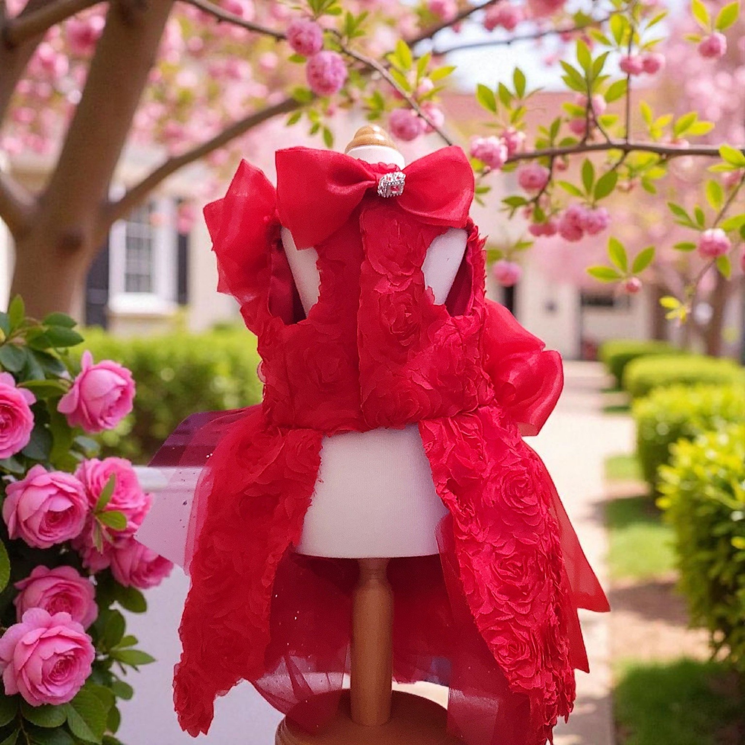 まるで咲き誇る薔薇をそのまま纏ったような、気品あふれるドレス。