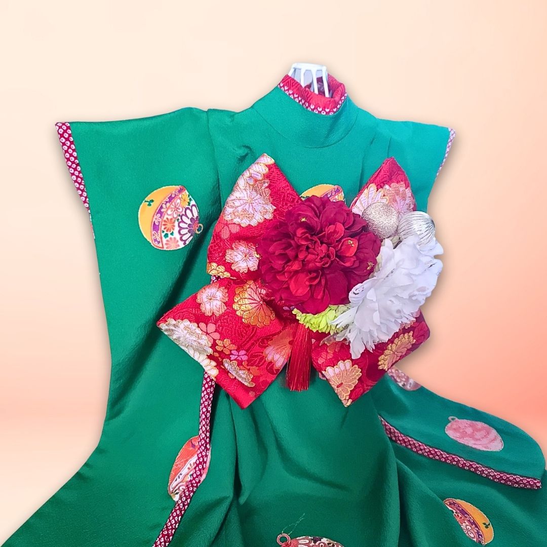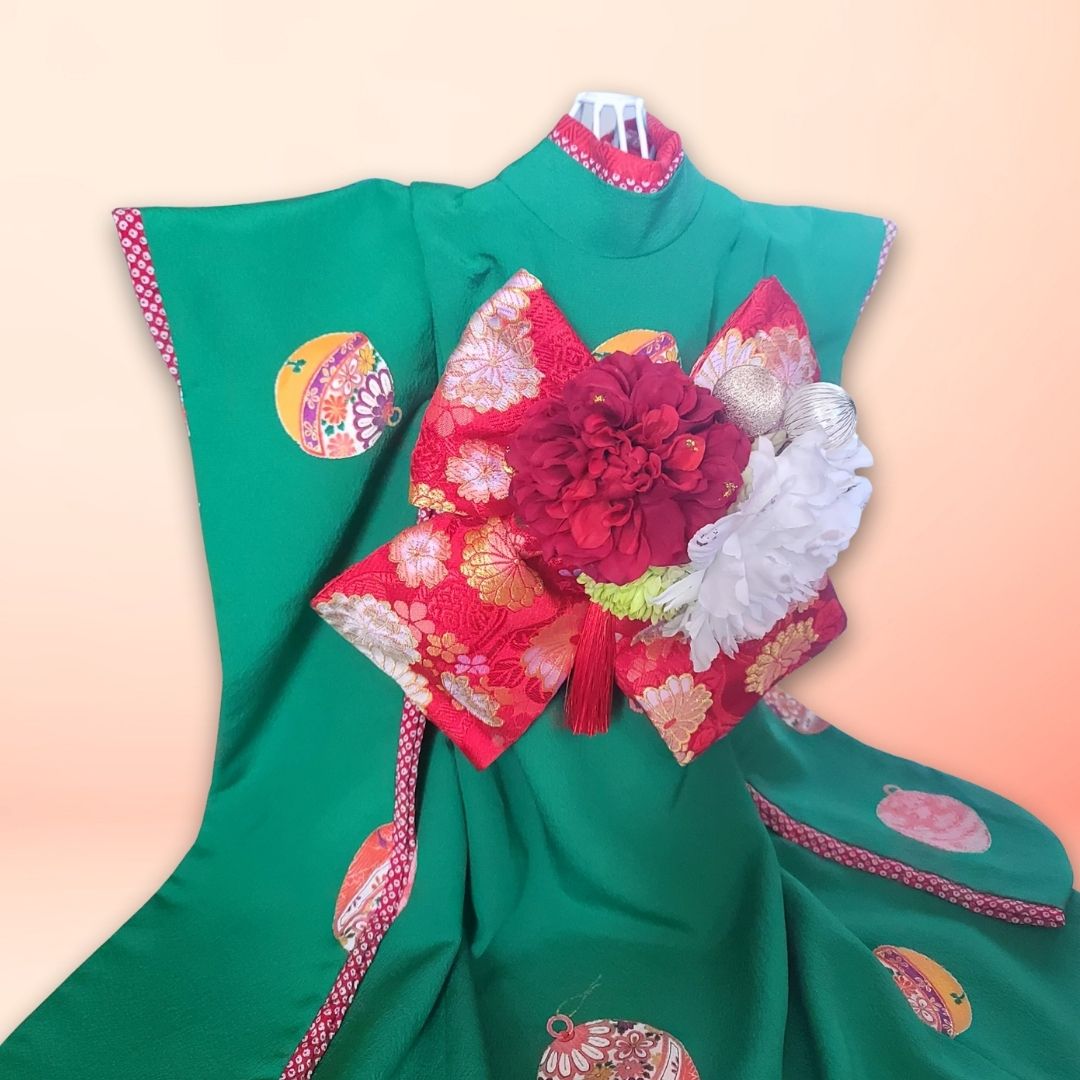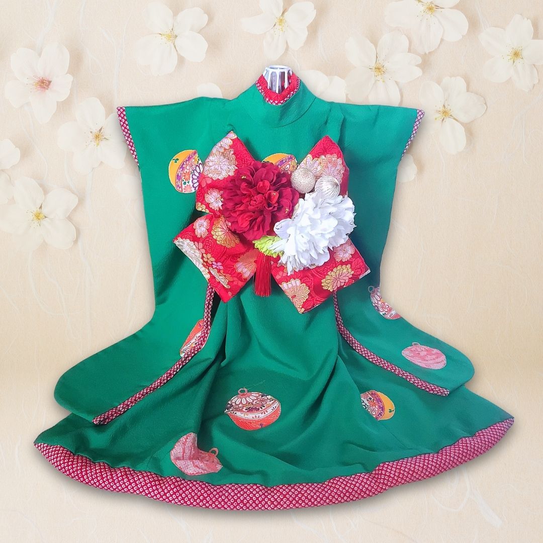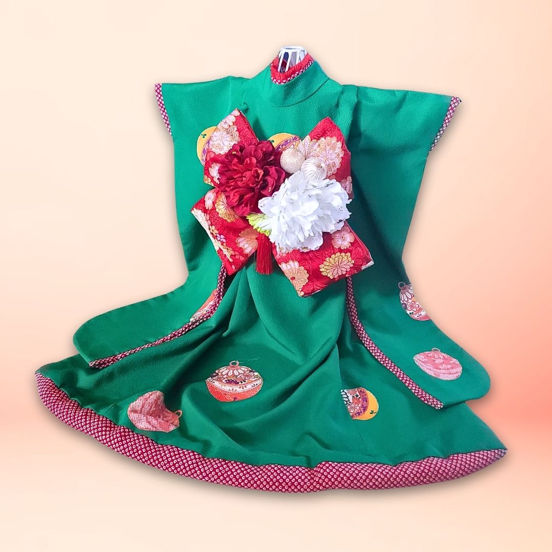ペットの着物お引きずり大振袖丹後ちりめん翠玉の華-犬服のペットの着物(帯電防止裏地)