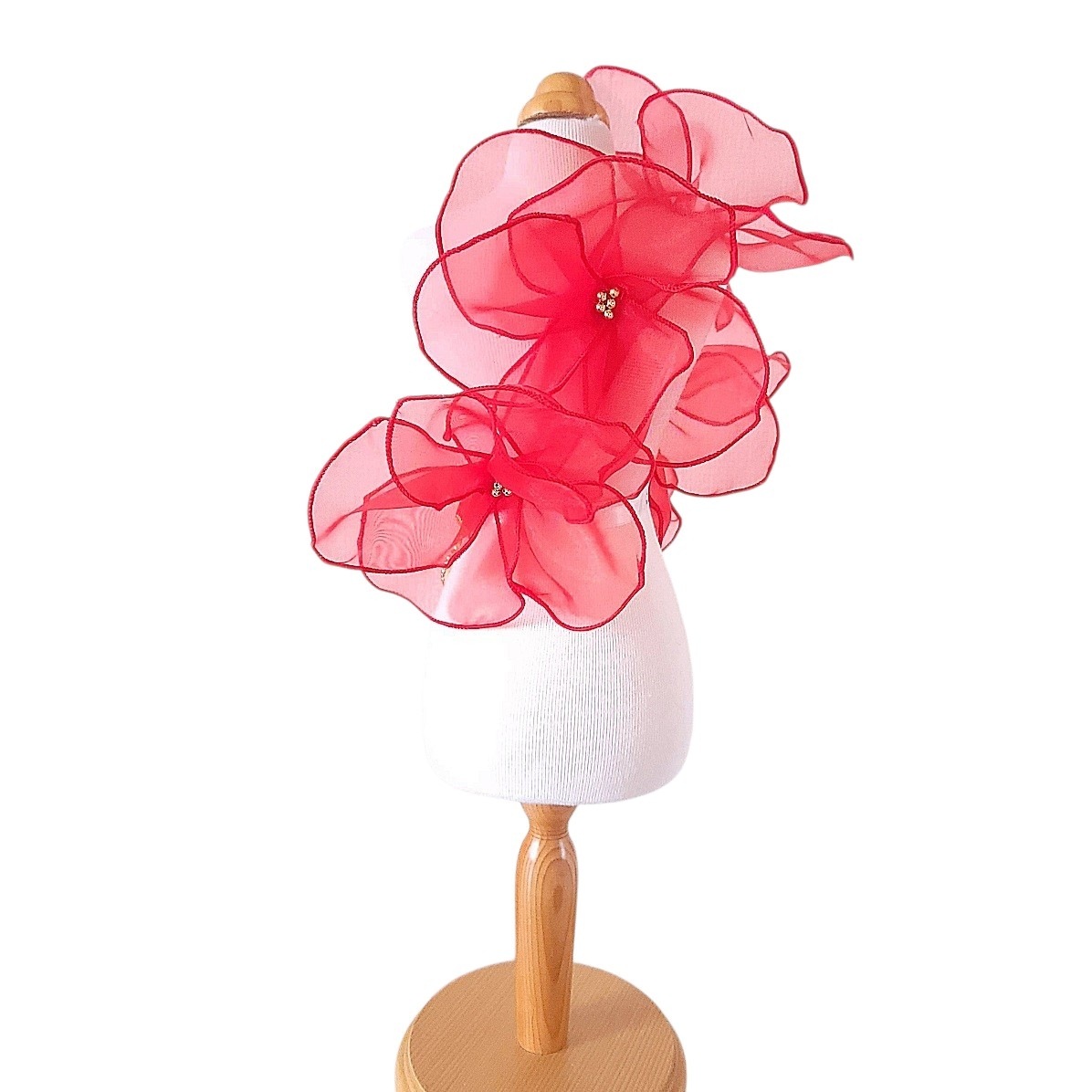 透け感のあるオーガンジー素材を贅沢に重ねることで、光を受けるたびにやさしく輝き、写真撮影では立体感と存在感を美しく引き立てます。