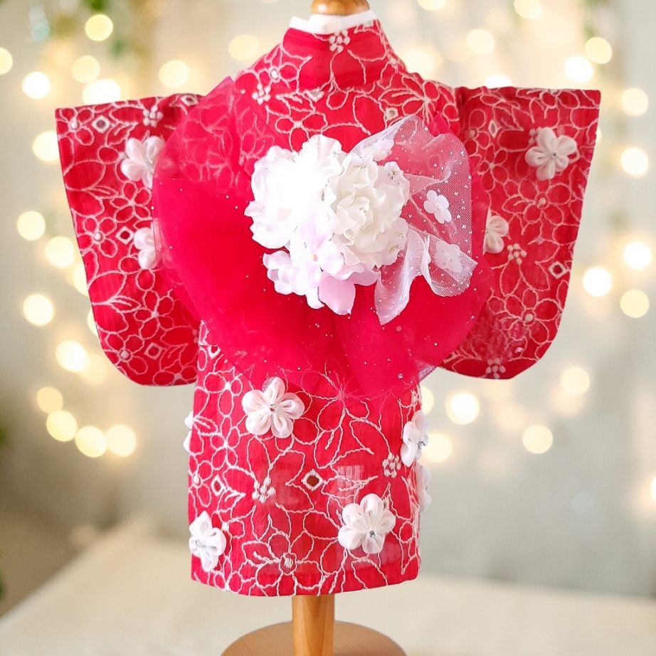 ペットウェア浴衣椿つばき浴衣・着物ホワイトー犬の浴衣猫の浴衣