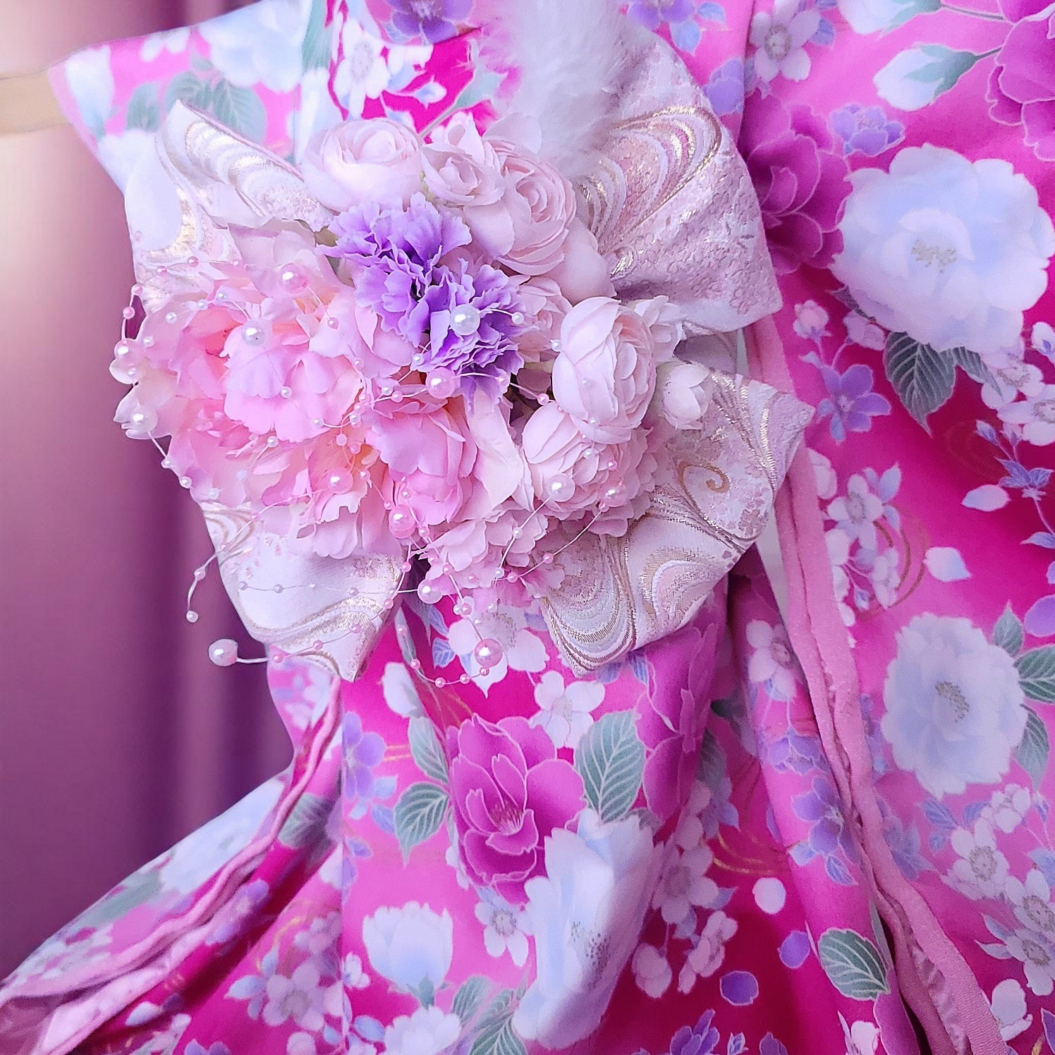 「恋の華」は、最愛の小さな家族に捧げる、大振袖のお引きずり着物です。