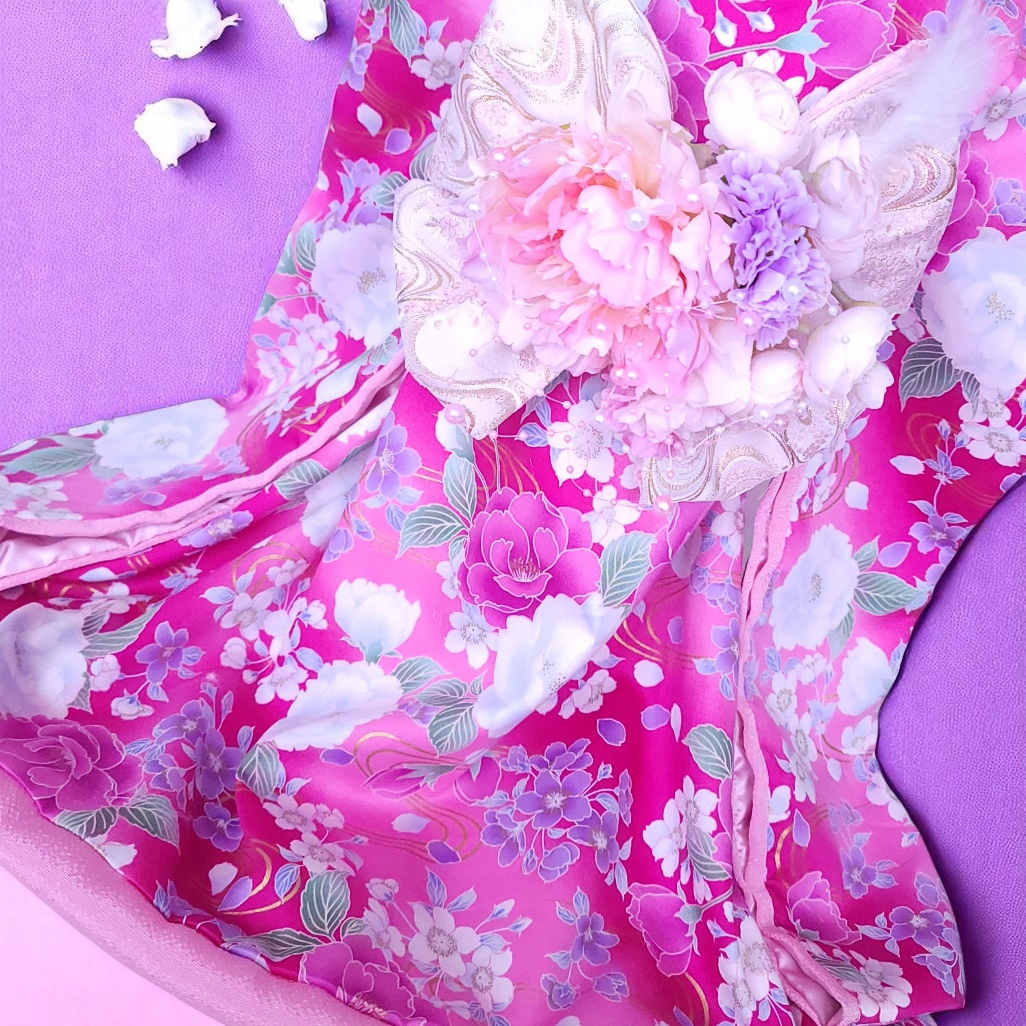 ペットの着物犬服の着物丹後ちりめん正絹(シルク)春陽のうた大振袖お引きずり