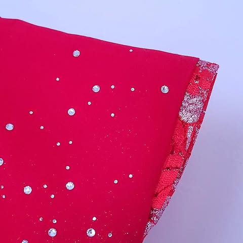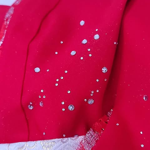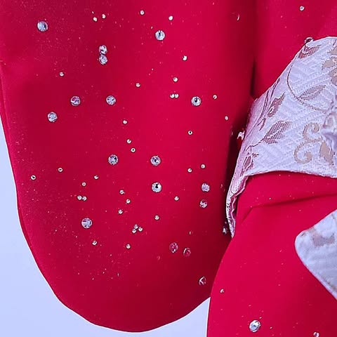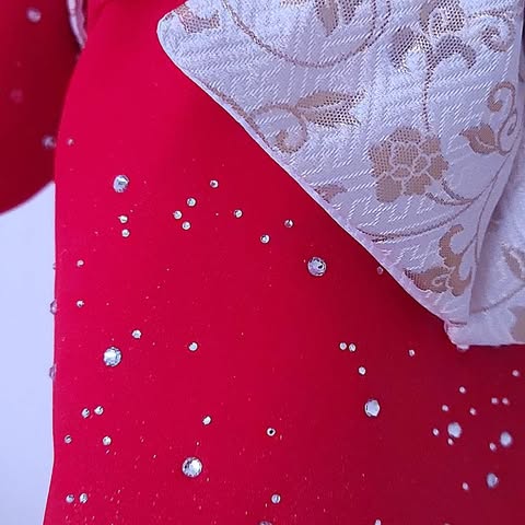 生地全体にラメ加工と光り輝くクリスタルを散りばめた大変美しい最高峰の1着。