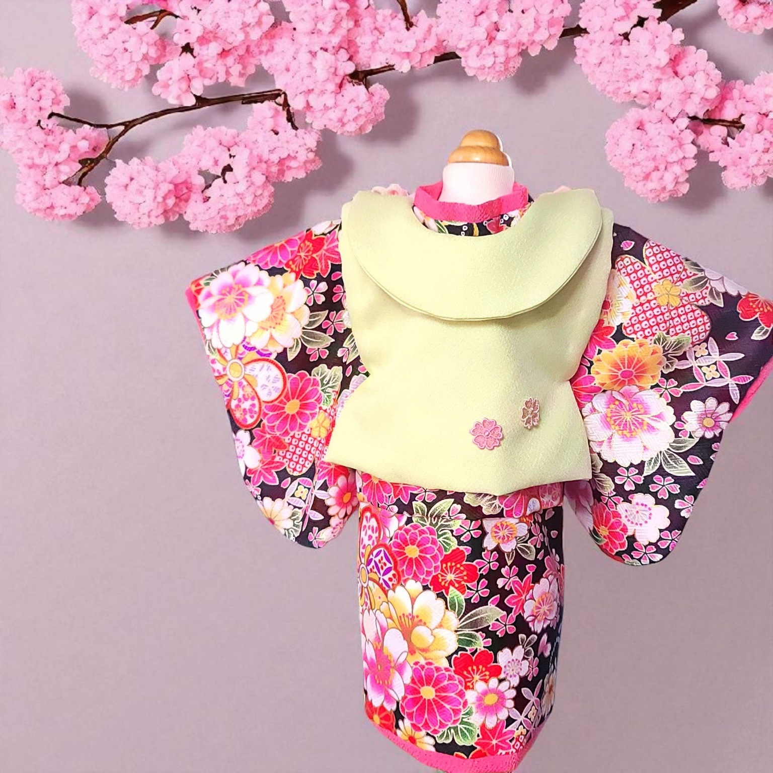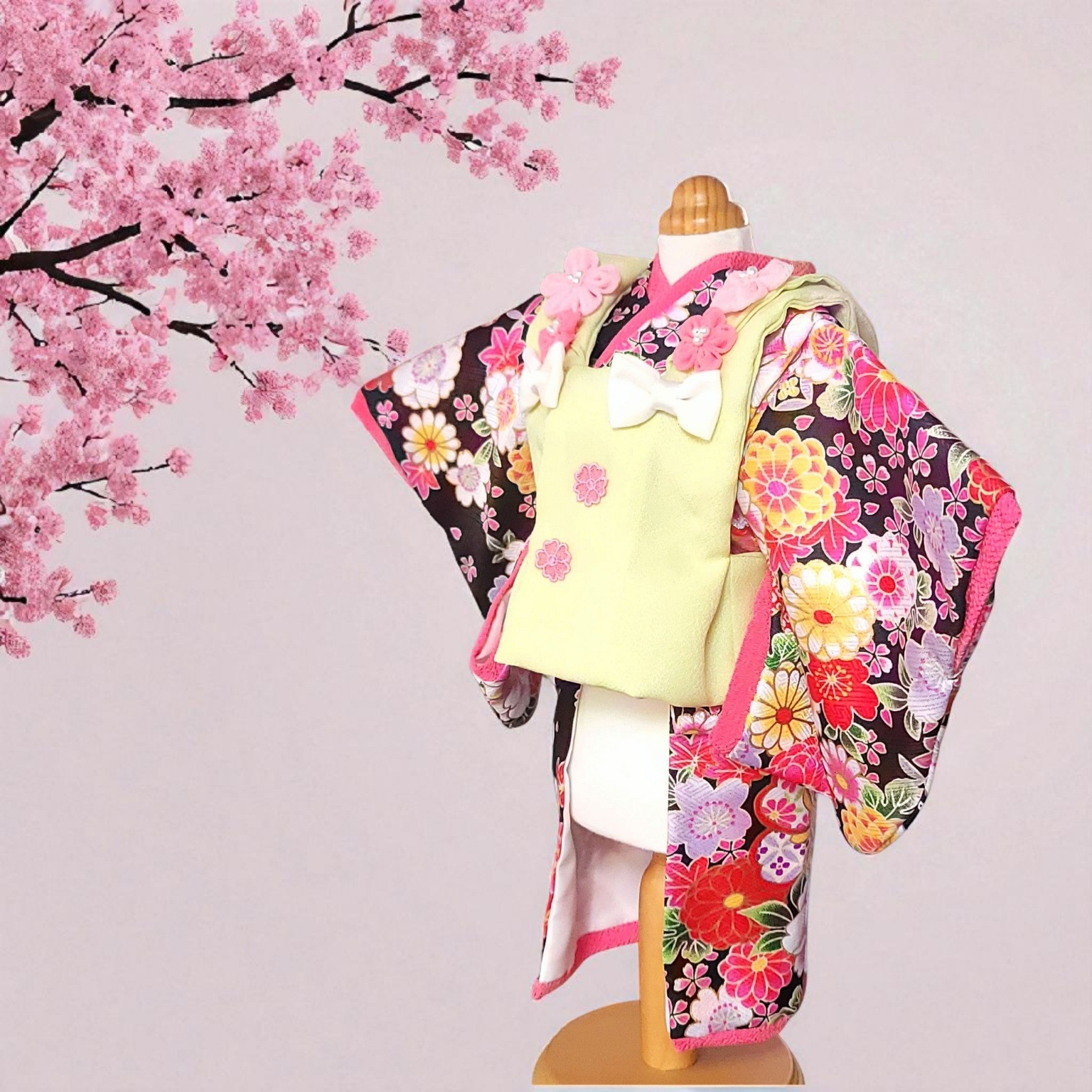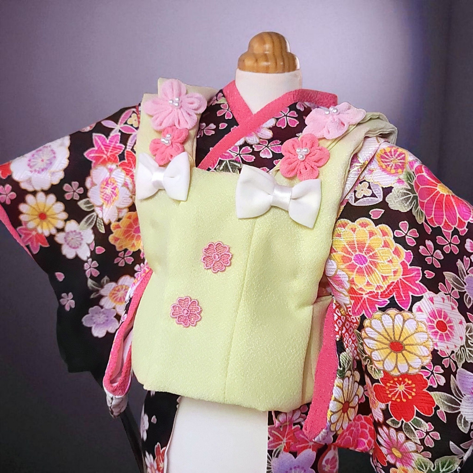 七五三やお正月などの晴れやかな日に、愛らしさと上品さを添える一着です。