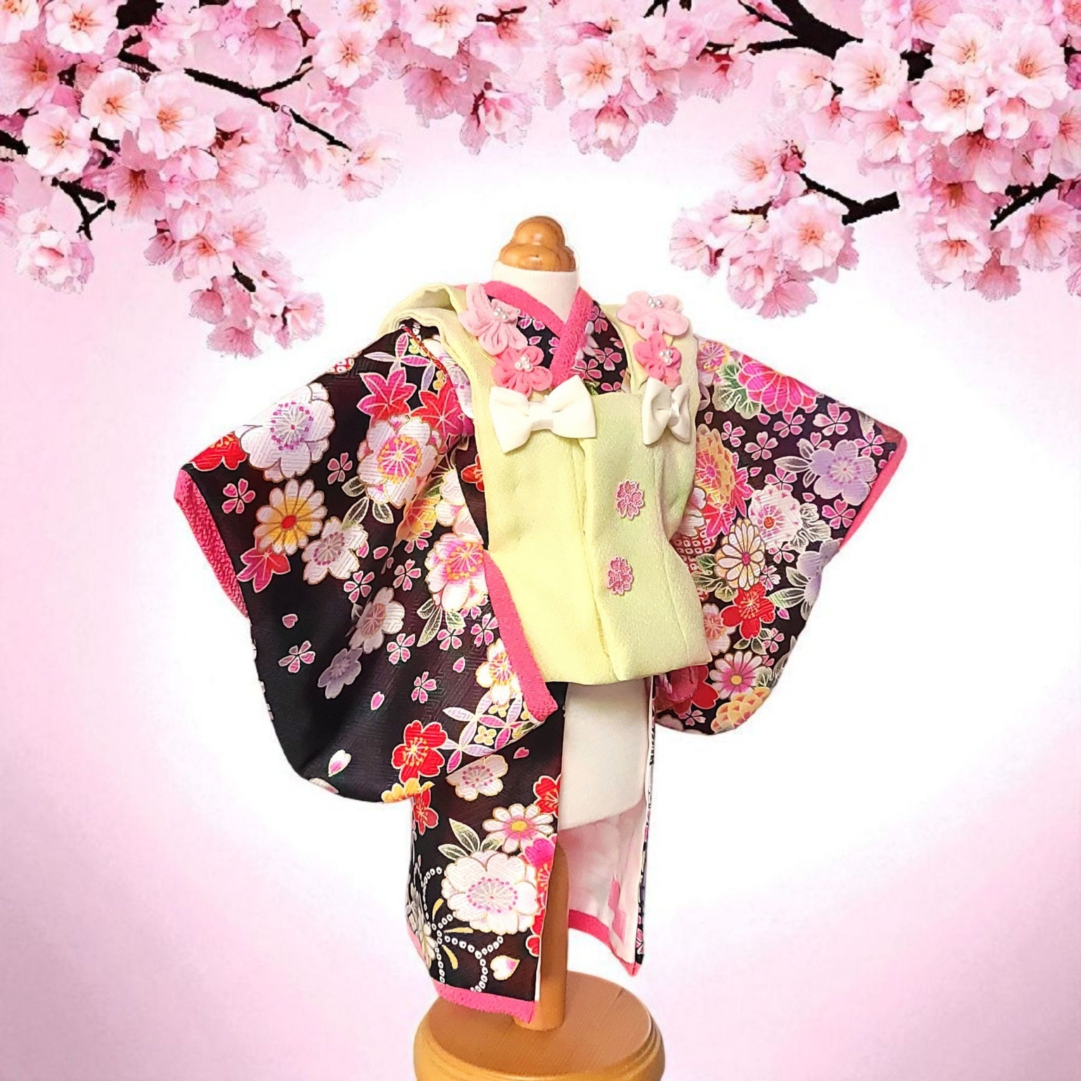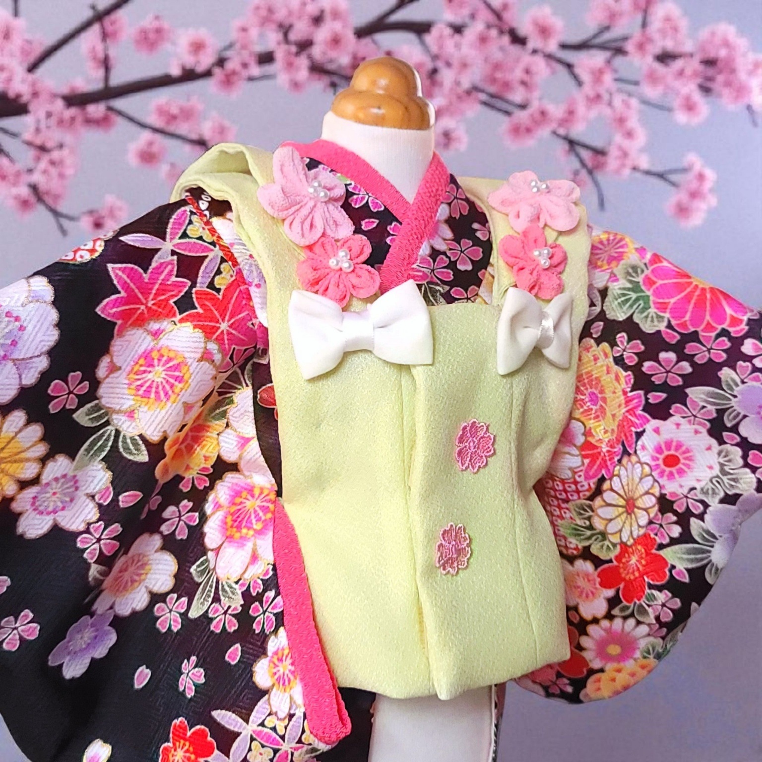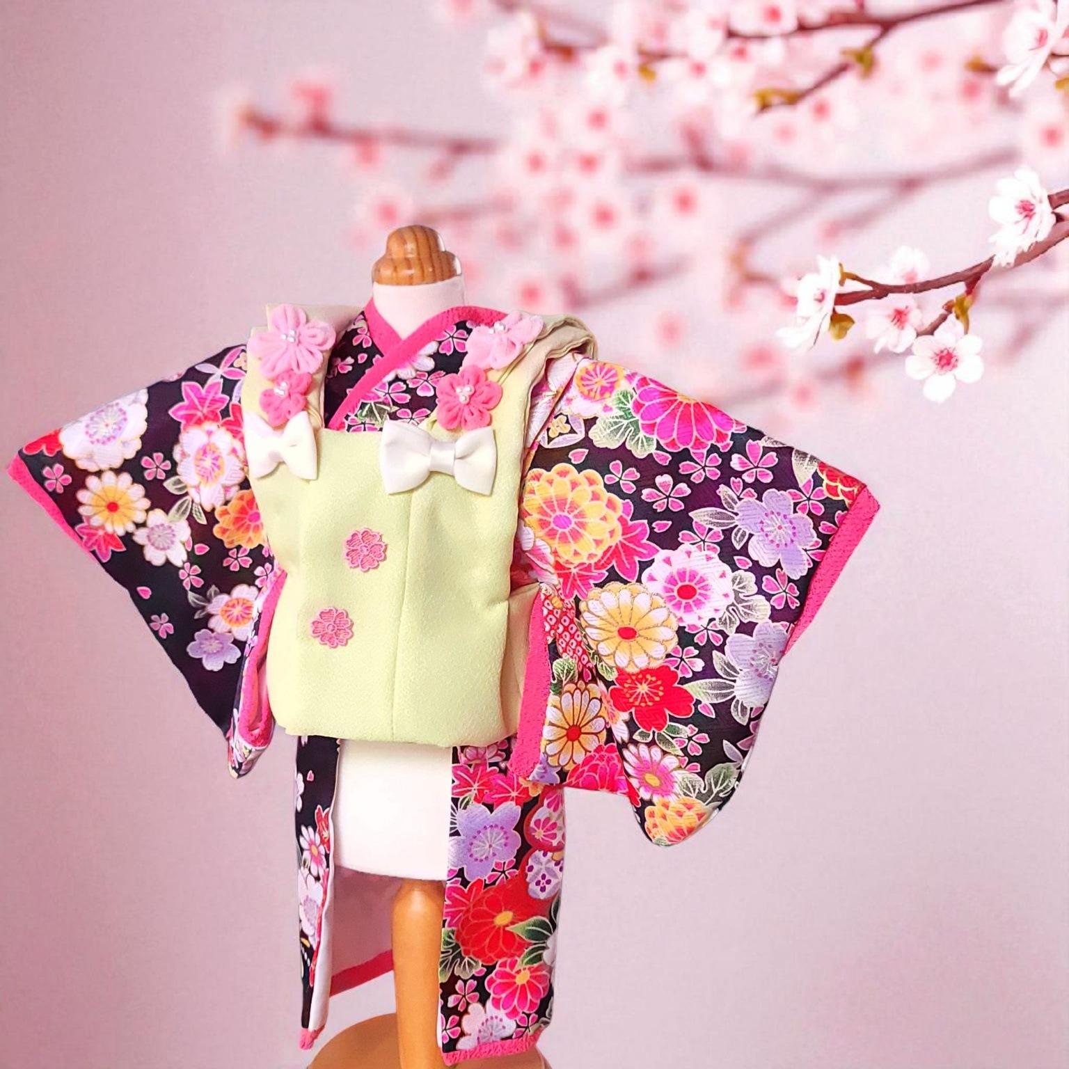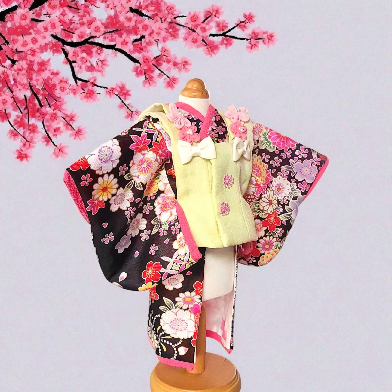 七五三やお正月などの晴れやかな日に、愛らしさと上品さを添える一着です。